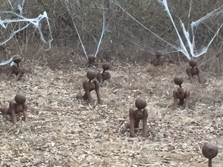 The bottom picture explains it all – these “dogs” which are part of the connection rig for carriages have been abandoned by the side of the trail and if you look at them the right way, they appear to be people dragging themselves out of the ground. Ironically, I was talking to the first two place-getters for the duathlon after the race and neither of them had noticed the “Beware of Zombies” sign or seen the dogs – they were too intent on racing. So once again I’ve shown that being competitive isn’t all it’s cracked up to be, and if you don’t look, you’ll miss so much (well that’s my story and I’m sticking to it!)